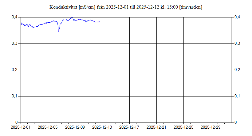 Konduktivitet i Fyrisån uppströms Islandsfallet vid pumphuset, Uppsala för december 2025