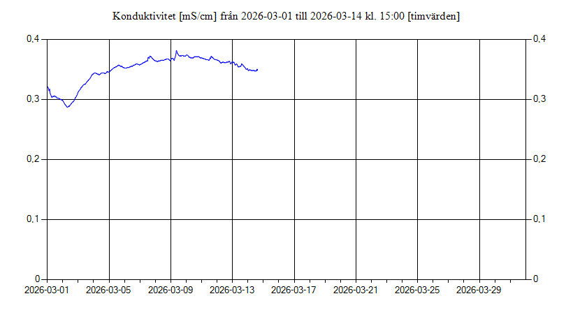 Konduktivitet i Fyrisån uppströms Islandsfallet vid pumphuset, Uppsala för mars 2026