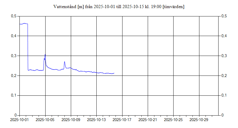 Vattenstånd i Fyrisån uppströms Islandsfallet vid pumphuset, Uppsala för oktober 2025