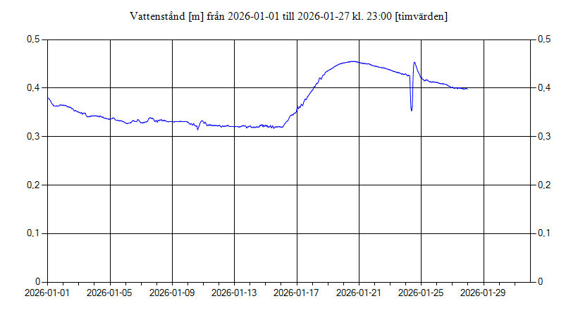 Vattenstånd i Fyrisån uppströms Islandsfallet vid pumphuset, Uppsala för januari 2026